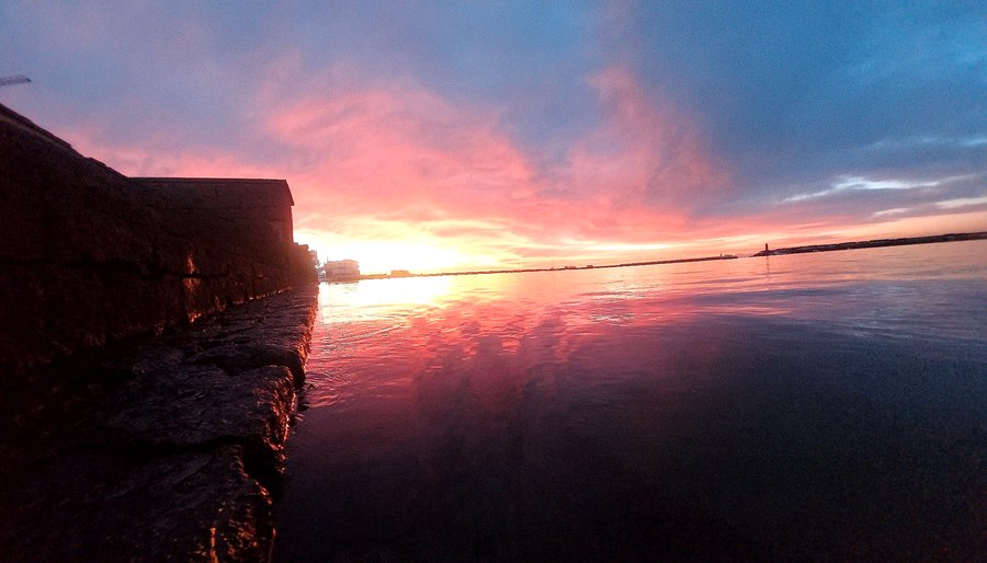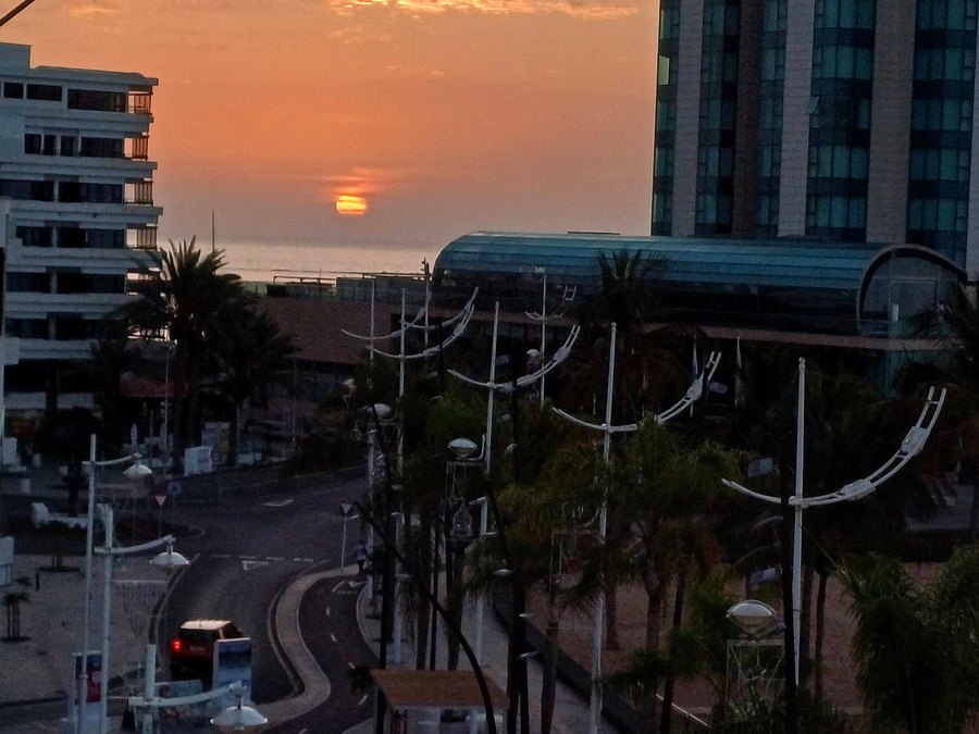 Amanecer sobre el Puerto de Arrecife visto desde el Parque Islas Canarias. Esta isla tiene sol todos los días del año — y aun así sigue dependiendo del petróleo que llega en barco. Foto: Elpejeverde.com