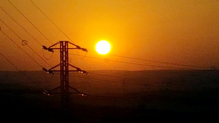 Una torre eléctrica al atardecer. El tendido que lleva la energía — importada, cara y dependiente del exterior — a cada rincón de la isla. Foto: Elpejeverde.com